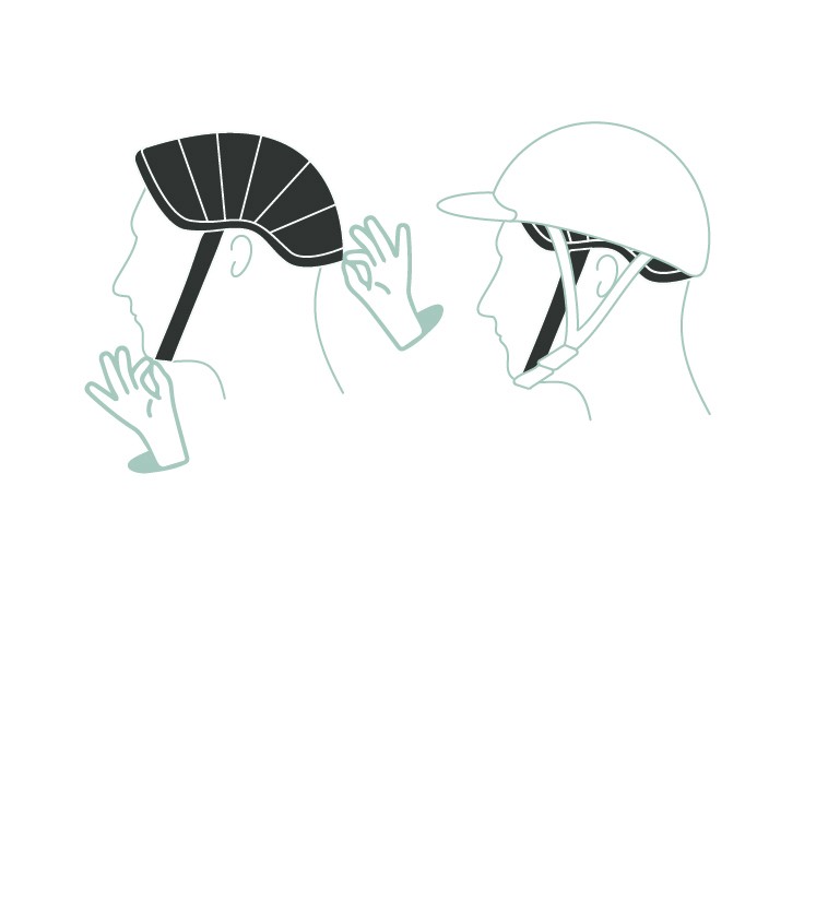 Đặt dưới mũ bảo hiểm và căn chỉnh với dây cằm.